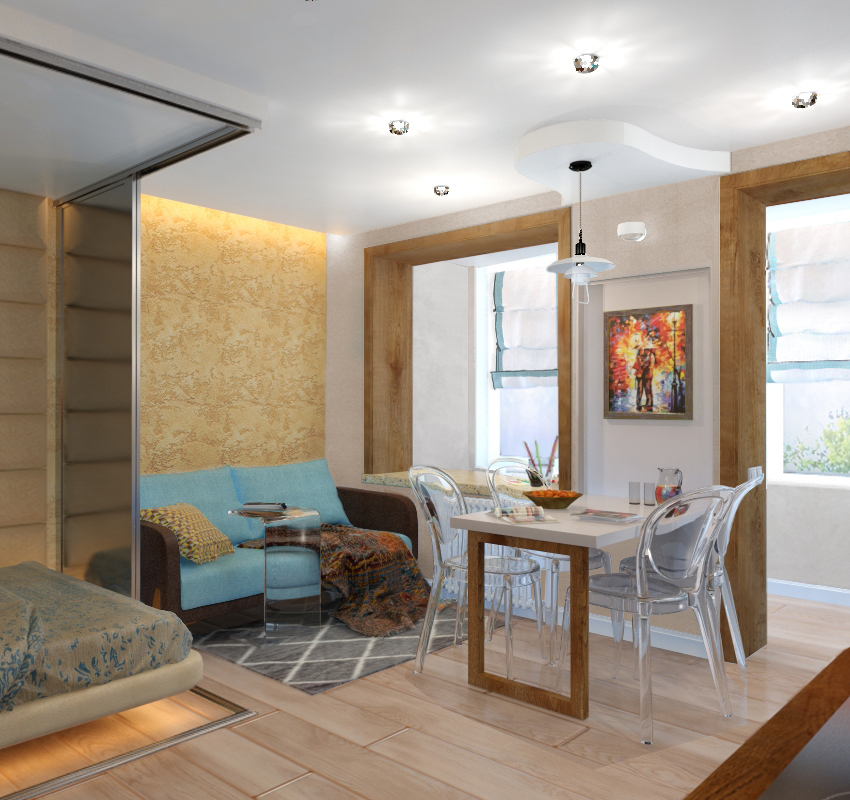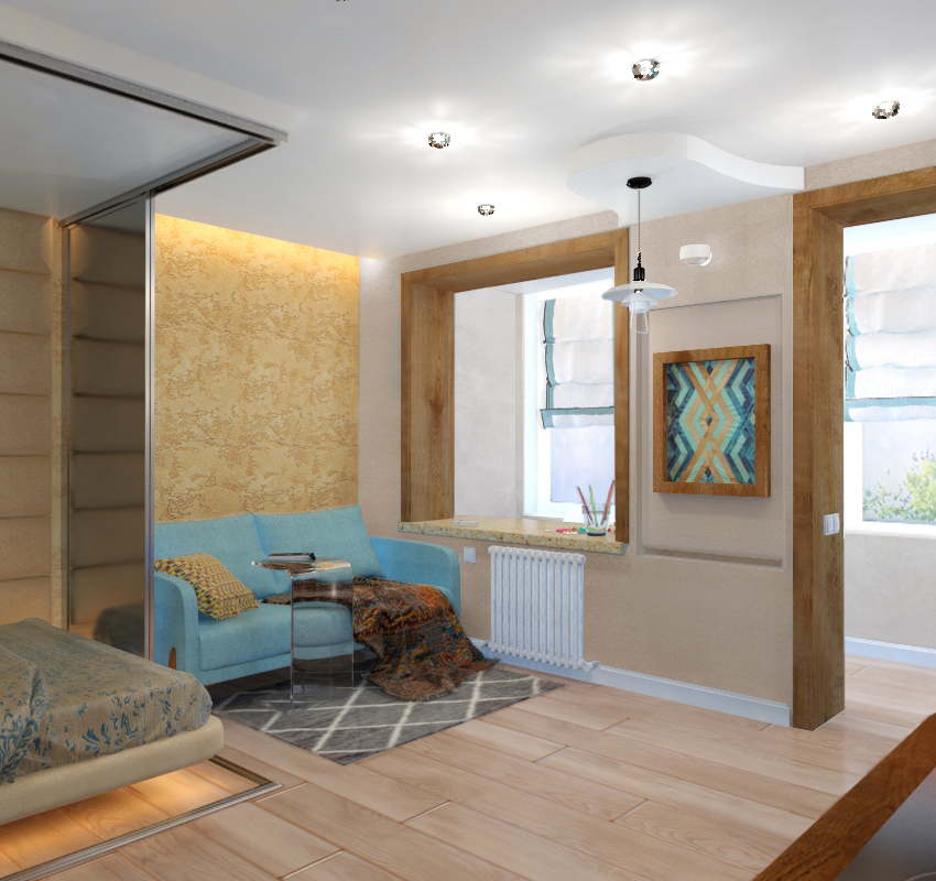 Недавно приобретенную студию владелица сразу решила обустраивать при помощи дизайнера.