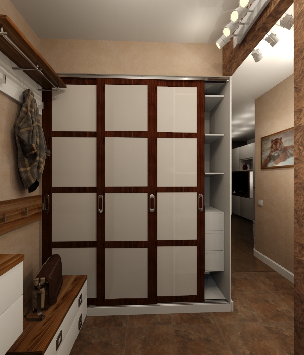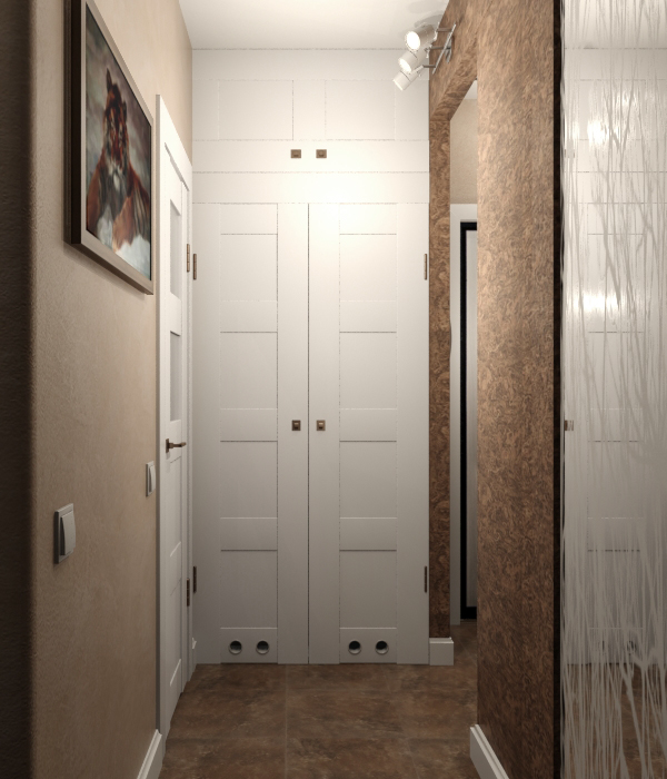 Квартира начинается с уютной прихожей кофейного и молочного оттенков.