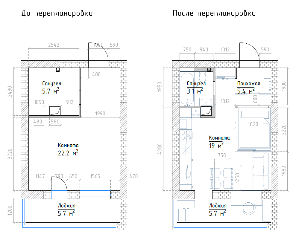 Для хранения одежды предусмотрен вместительный встроенный шкаф. Он же отгораживает прихожую от жилой зоны.