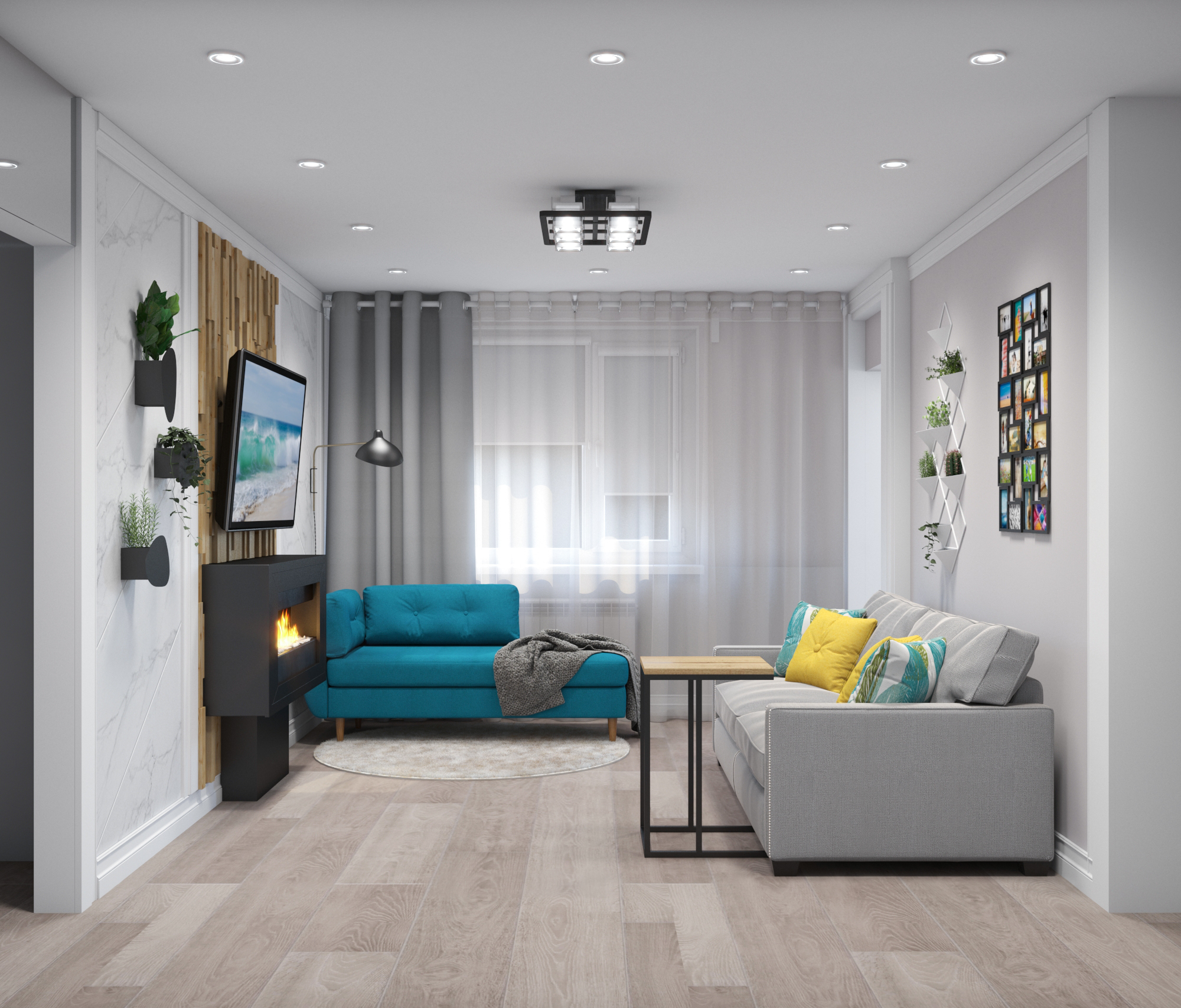 Молодая семья с двумя детьми затеяла ремонт в своей двухкомнатной квартире еще несколько лет назад. На тот момент у мамы была масса идей: светлая проходная гостиная с камином и контрастными акцентами в стиле хай-тек, детская комната с настоящей художественной росписью на всю стену… Увы, занятость не позволила воплотить все задумки в жизнь и ремонт сильно затянулся.