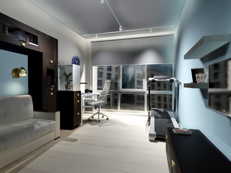 Оба супруга работают удаленно, поэтому в двухкомнатной квартире свободной планировки с окнами в пол предстояло разместить не только спальню, гостиную и кухню-столовую, но и два рабочих места. Причем, если один предпочитает работать под музыку, второму требуется полная тишина. Из-за этого рабочие зоны пришлось “развести” по разным комнатам.