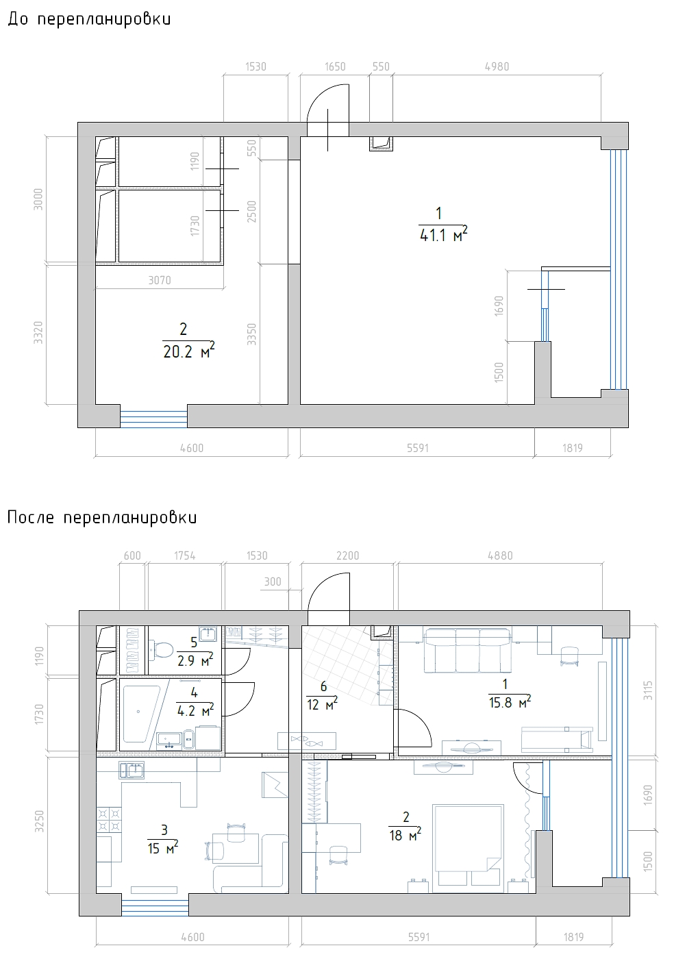 Площадь квартиры до перепланировки 70 квадратных метров.