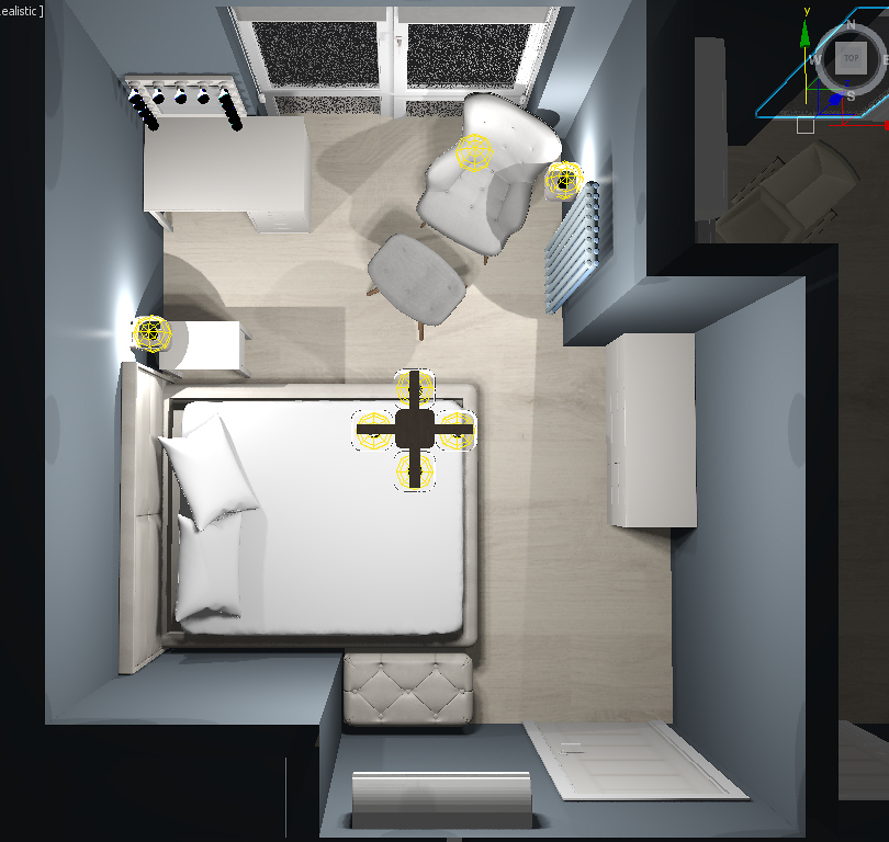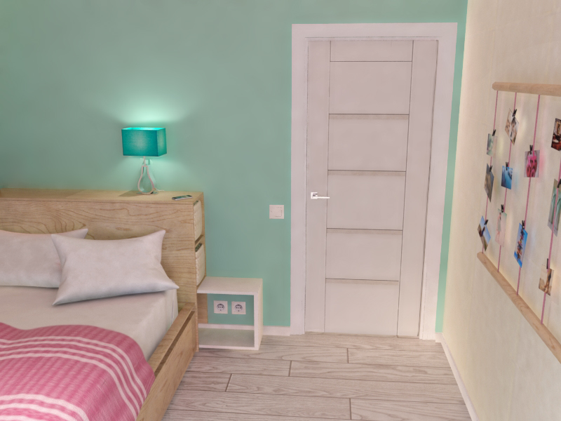 Места для полноценной прикроватной тумбочки оказалось недостаточно, поэтому к кровати пристроили глубокое изголовье с полками и выдвижным столиком. Основание кровати тоже "работает": в нем разместились два выдвижных ящика.