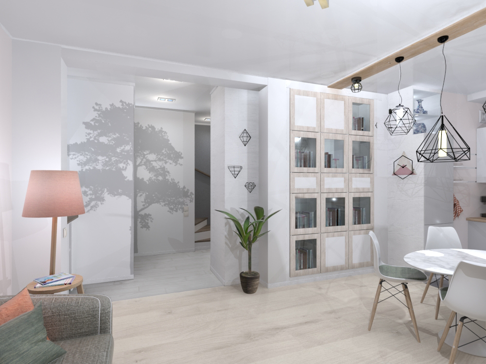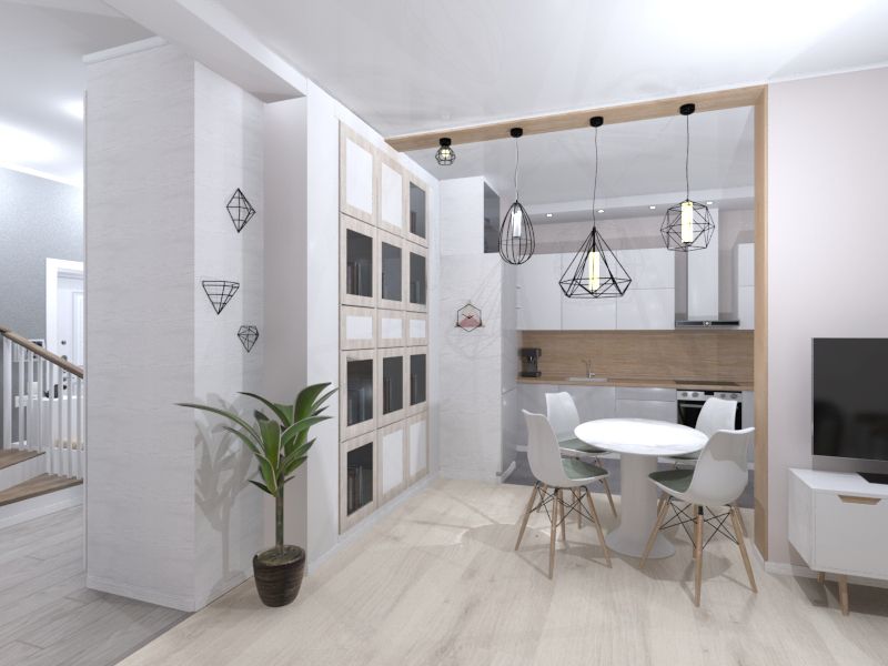 Для оформления квартиры заказчицы выбрали скандинавский стиль с лаконичной белой мебелью и акцентами древесного, оранжевого и хвойного оттенков.