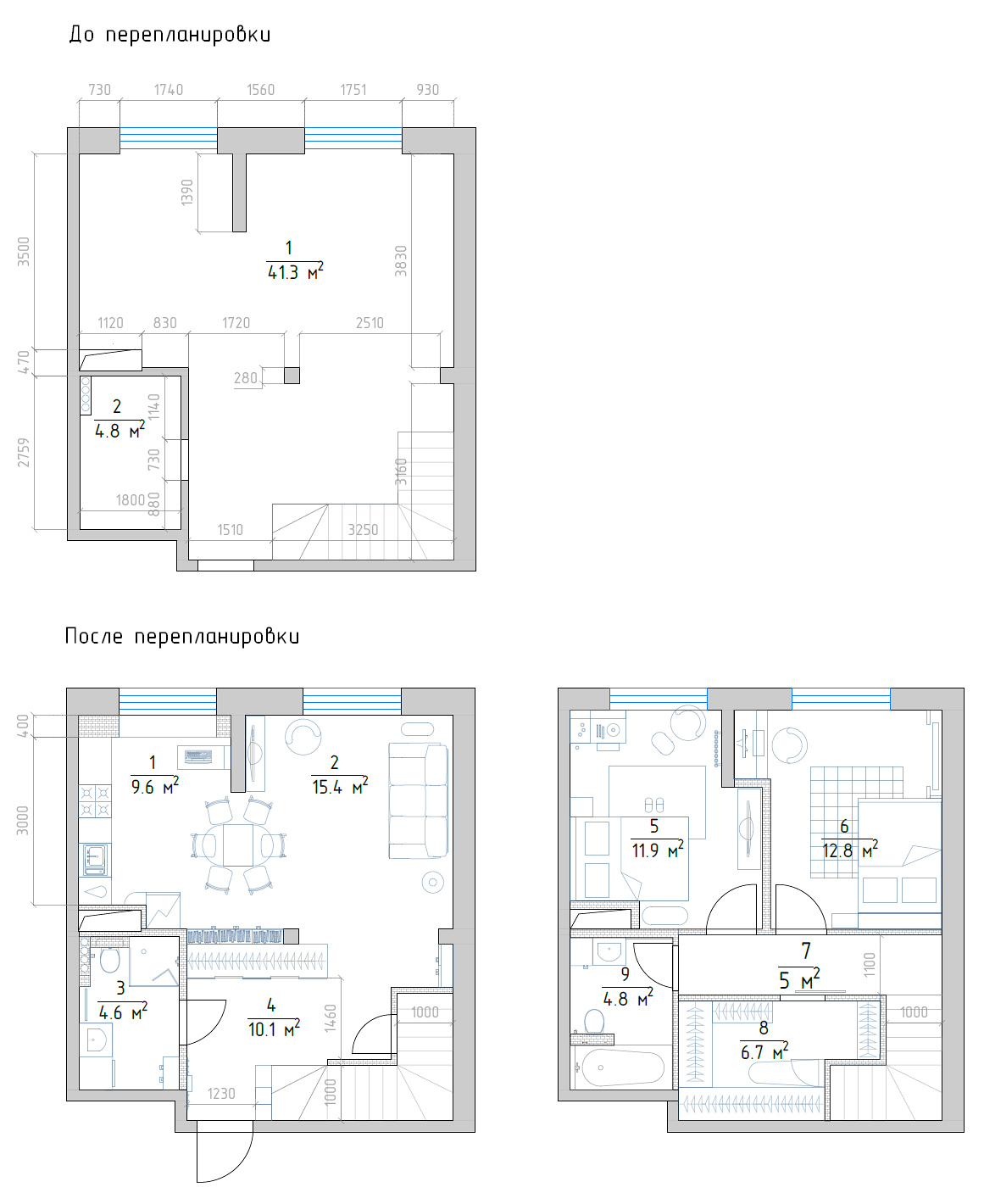 Площадь квартиры до перепланировки 70 квадратных метров.