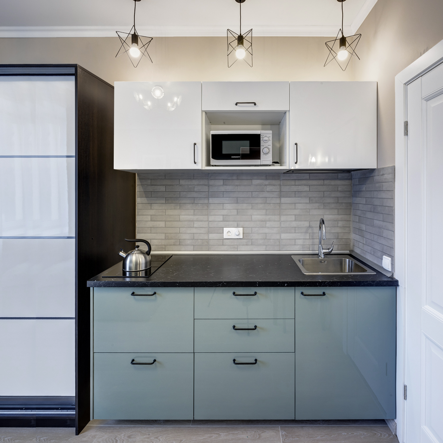 Первая студия, занявшая место бывшей общей кухни, получила проектное название "Авангард". В силу объективных причин она получилась самой компактной. Планировку усложнило обилие проходящих сквозь нее коммуникаций. Некоторые трубы оказались настолько ветхими, что их пришлось полностью заменить.