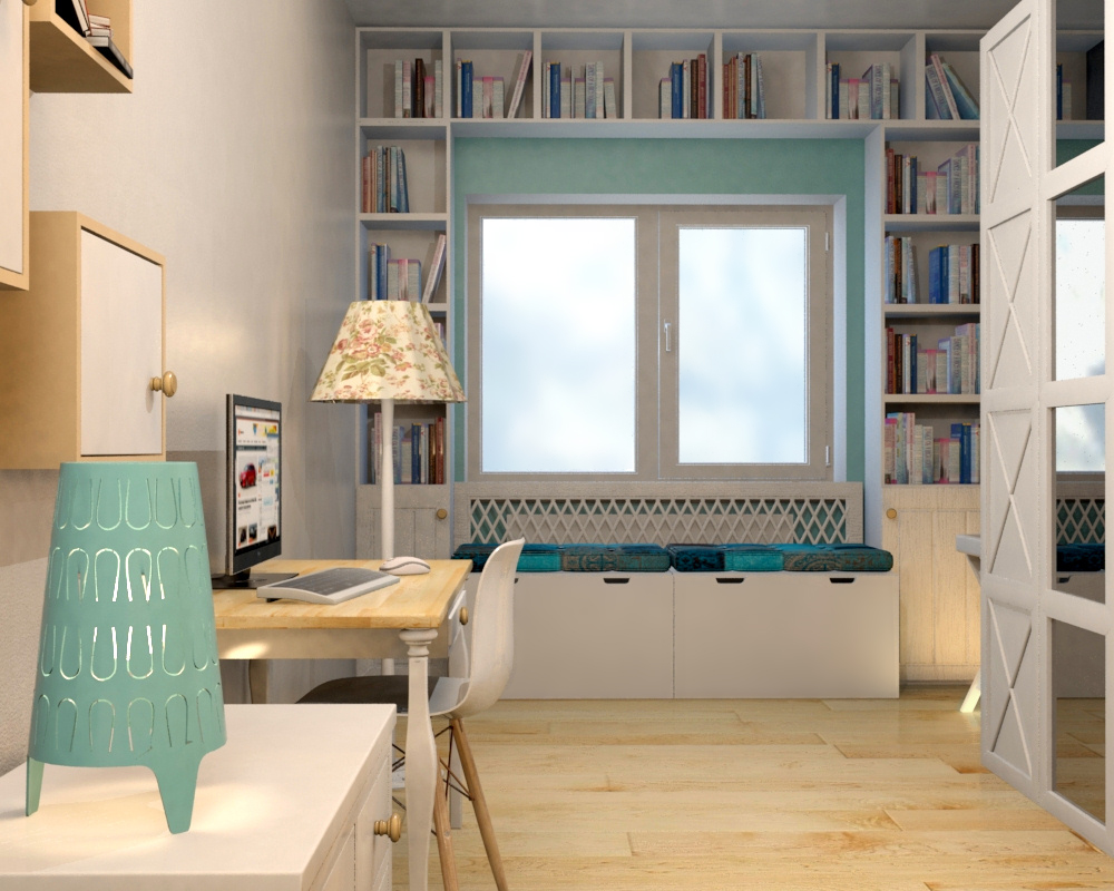 Светлая мебель с нотками стиля прованс формирует не загружающий пространство интерьер.