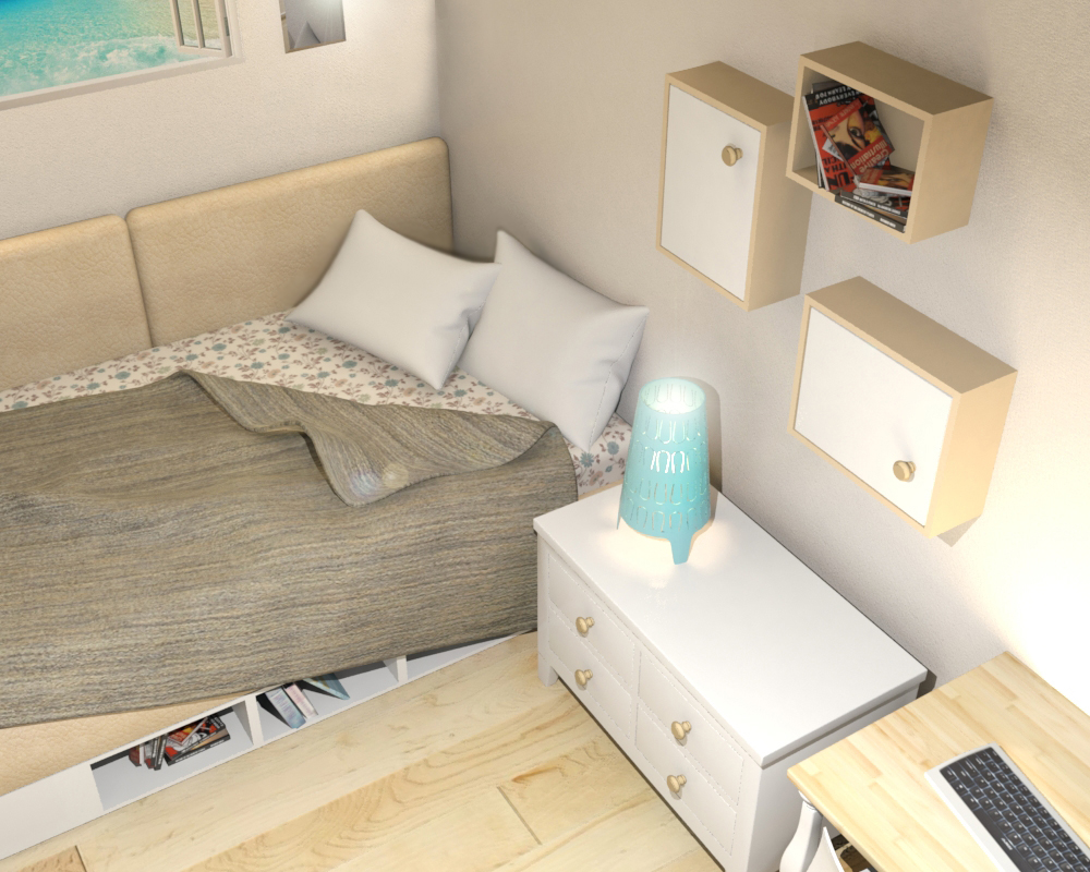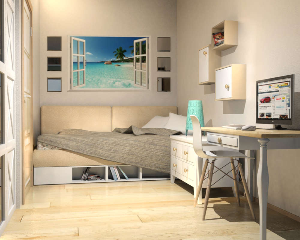 Девушка из Санкт-Петербурга в перспективе мечтает переехать на Средиземное море – в солнечную Андалуссию. Нужное настроение в дождливом Питере должны поддержать песочные и бирюзовые оттенки, в которых решено было оформить небольшую однокомнатную квартиру.