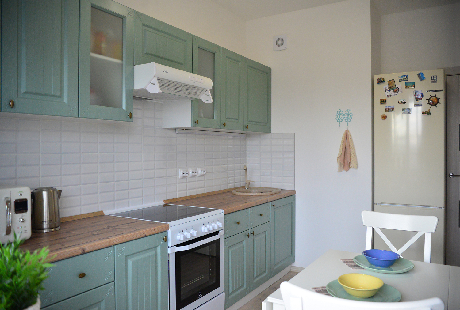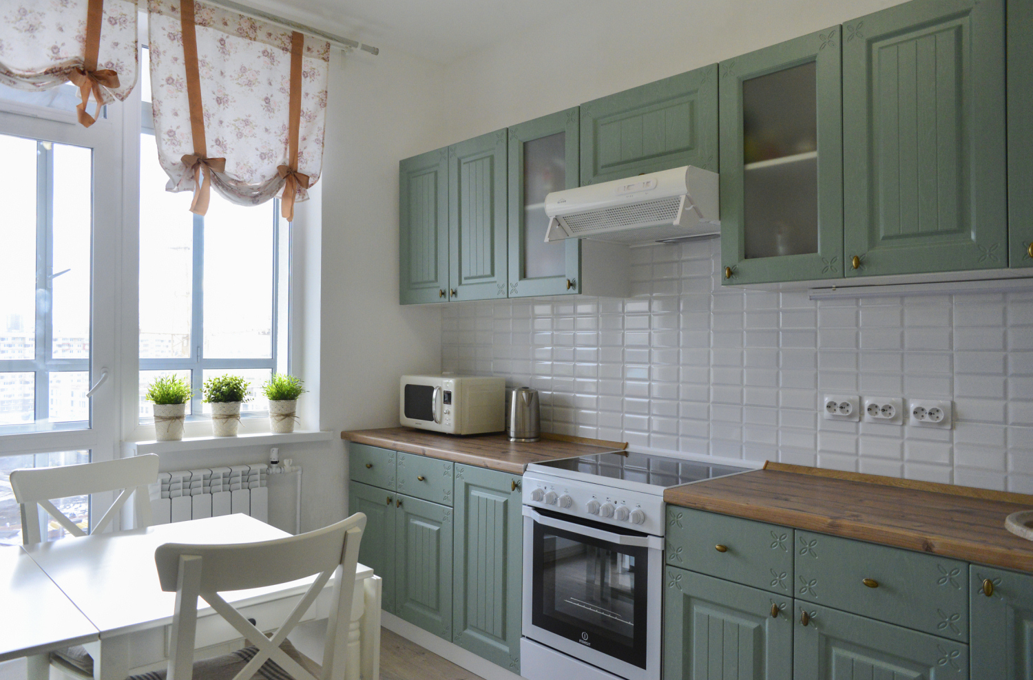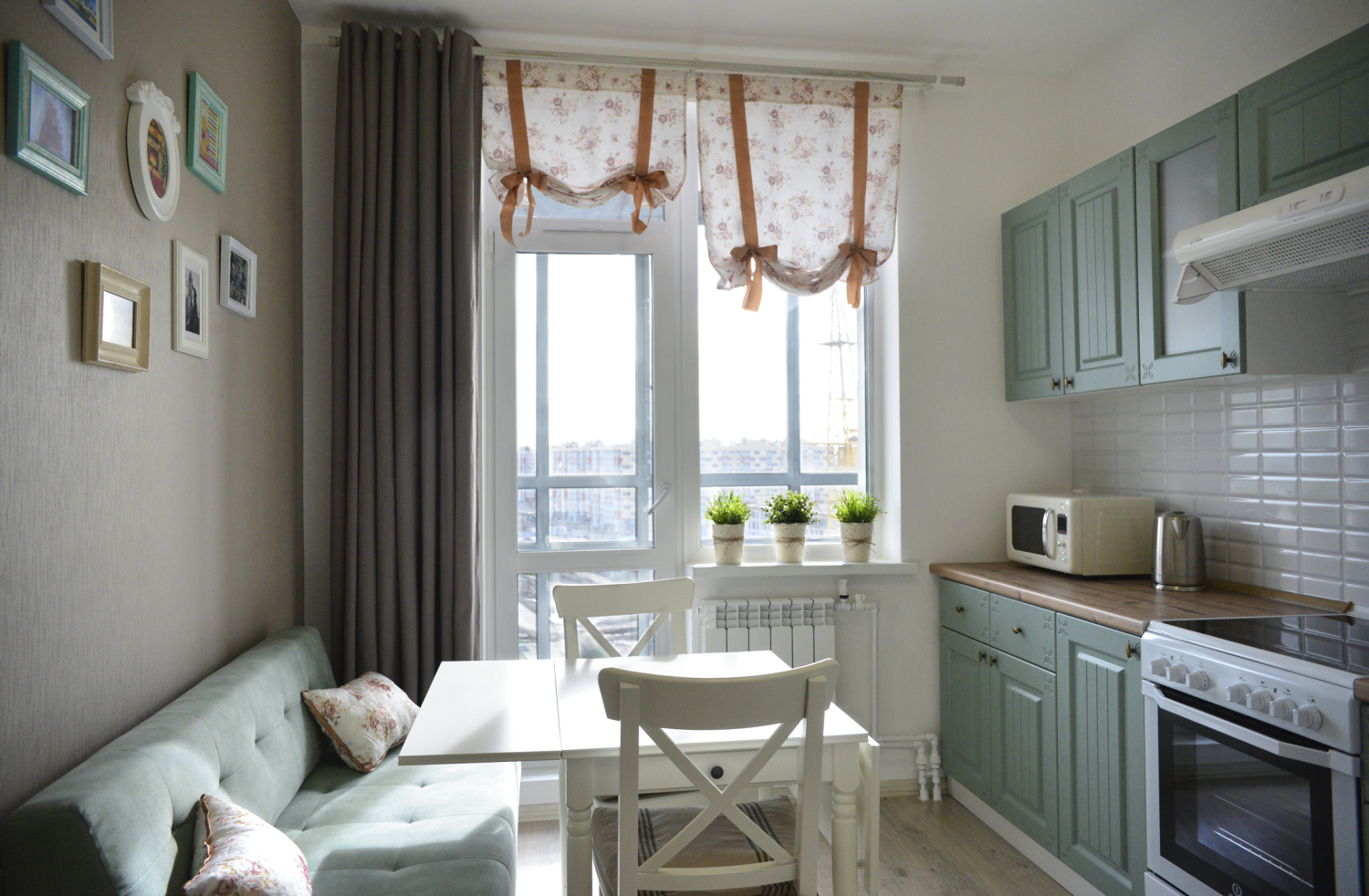 Для оформления кухни клиентка выбрала мотивы французского Прованса. Главной задачей было добиться нужного настроения при минимальных затратах времени и ресурсов: владелица планировала заселиться в новую квартиру как можно скорее.