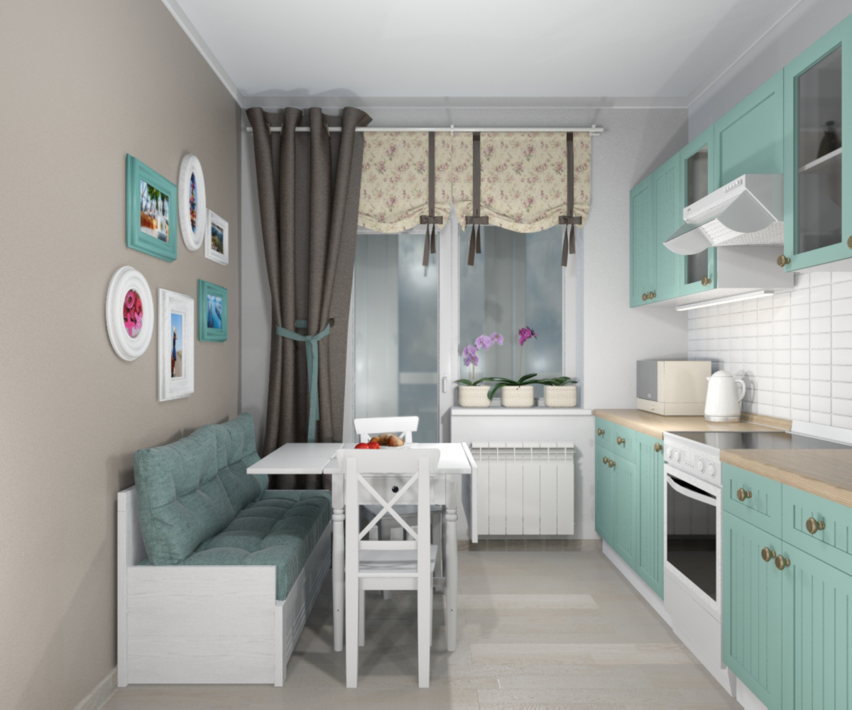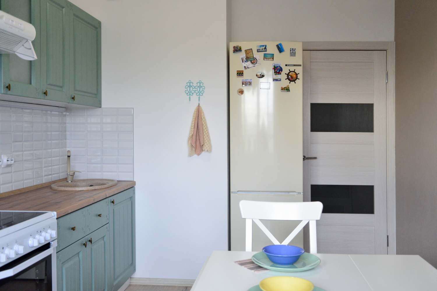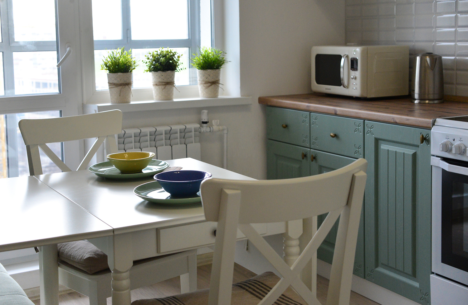 Для оформления кухни клиентка выбрала мотивы французского Прованса. Главной задачей было добиться нужного настроения при минимальных затратах времени и ресурсов: владелица планировала заселиться в новую квартиру как можно скорее.