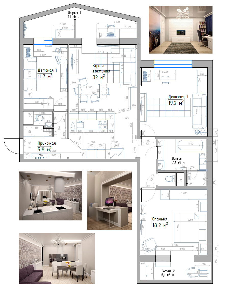 Ожидающая пополнения молодая семья решила перебраться в более комфортное жилье. Просторную трехкомнатную квартиру площадью более 100 квадратных метровудалось найти в тихом и уютном районе Москвы. Но жилье нуждалось в капитальном ремонте: квартира в старом панельном доме серьезно износилась. К тому же, кухня оказалась слишком тесной для совместных трапез, а двух спален было недостаточно. Владельцы хотели организовать две отдельные детские.