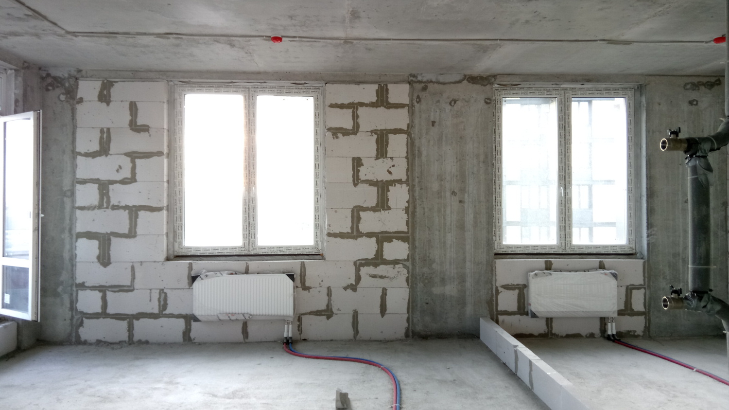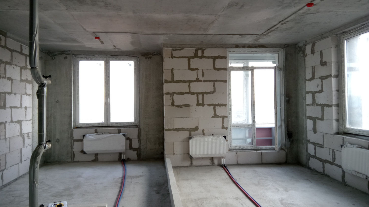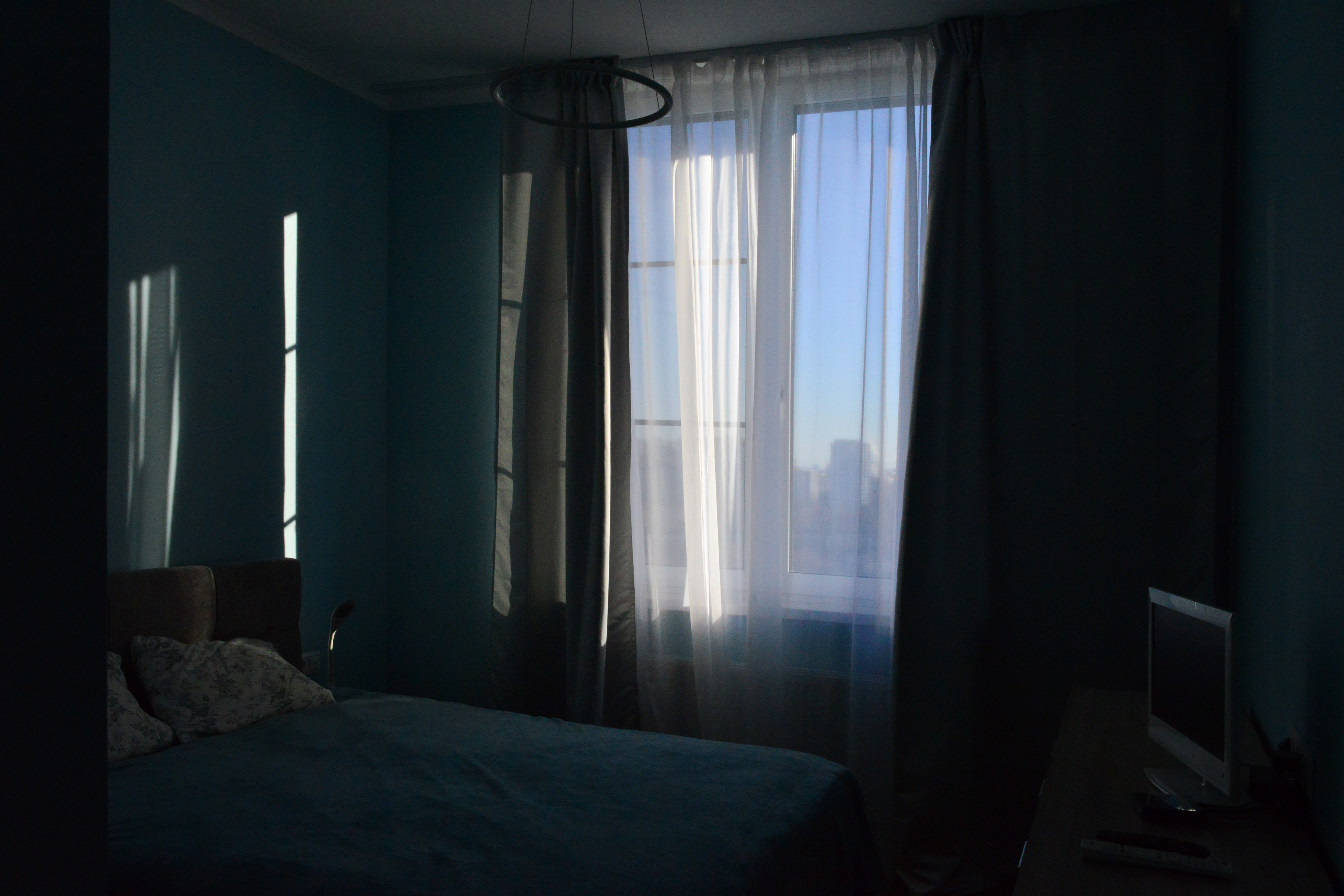 Хозяйка пока не успела подобрать декор, поэтому главным украшением комнаты служит панорамный вид из окна.