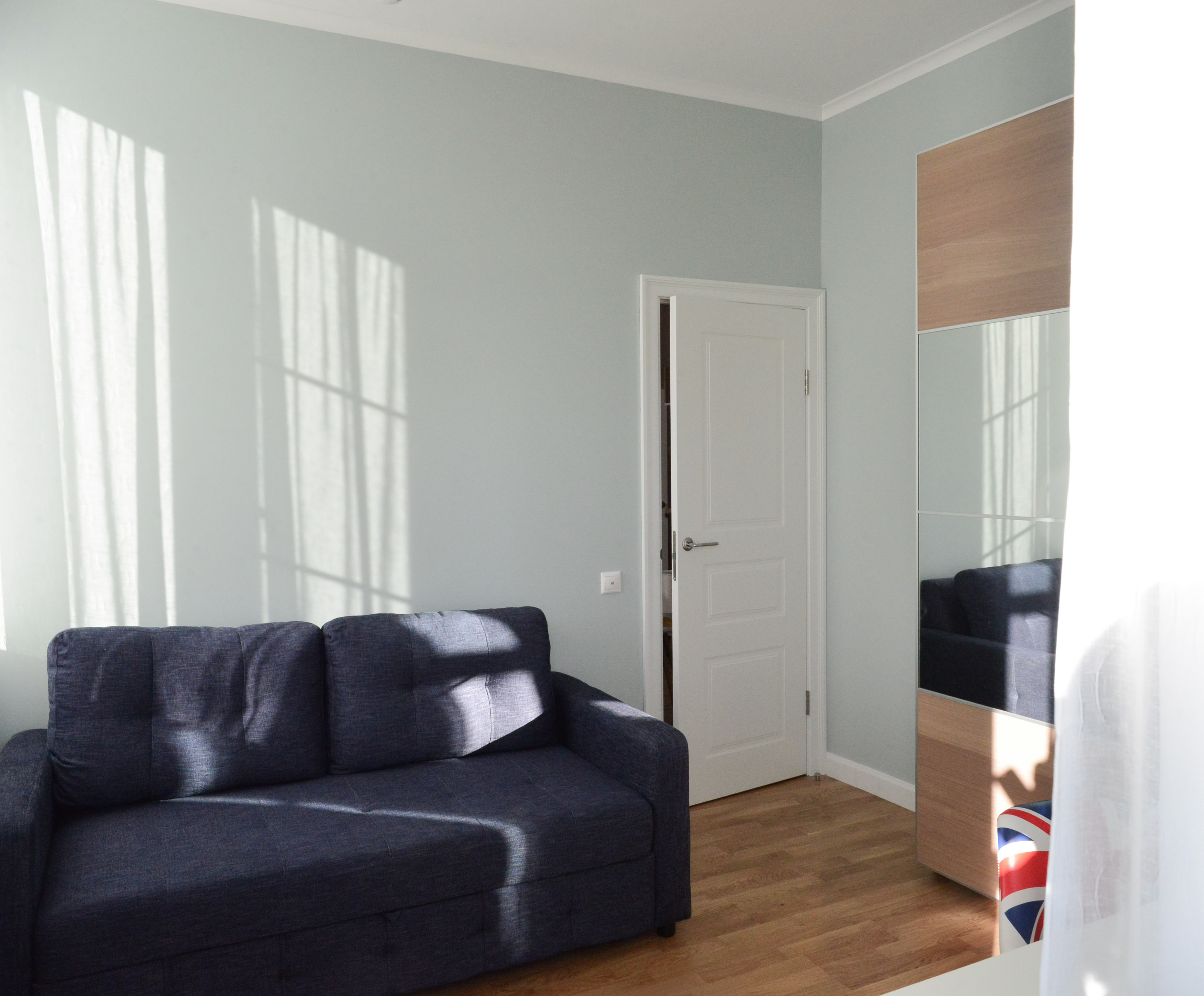 Ирина с самого начала планировала использовать для окраски стен светлые актуальные цвета: теплый серый, бирюзовый, припыленный голубой. В интерьер новой квартиры они вписались очень органично.