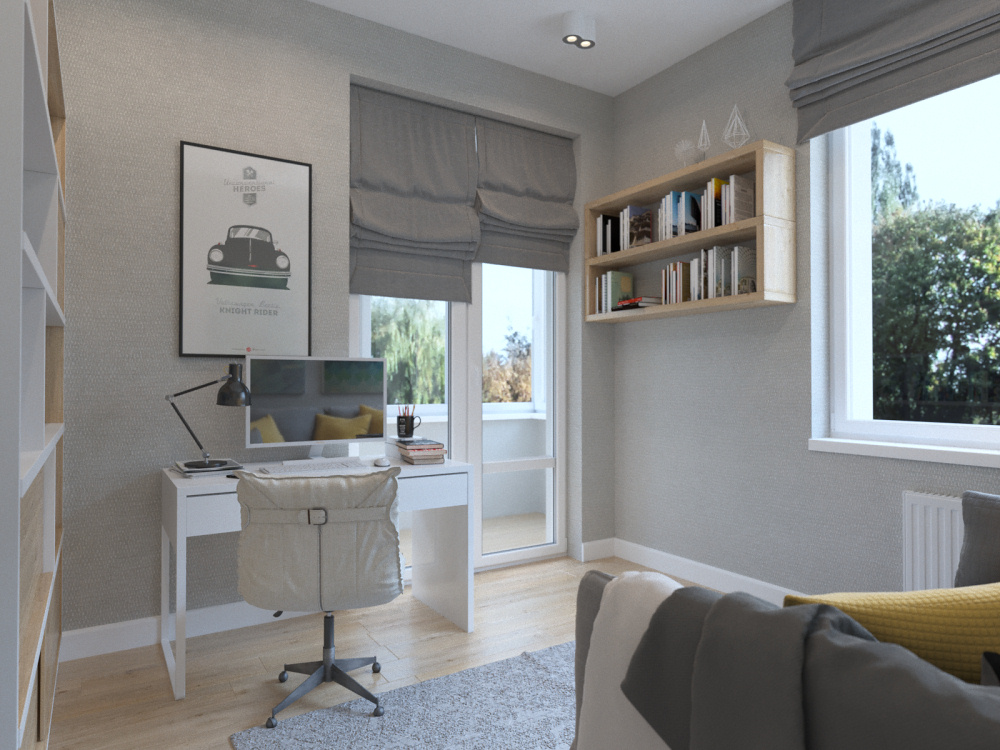 В гостевой комнате два окна. Одно из них совмещено с дверным блоком и имеет выход на лоджию.